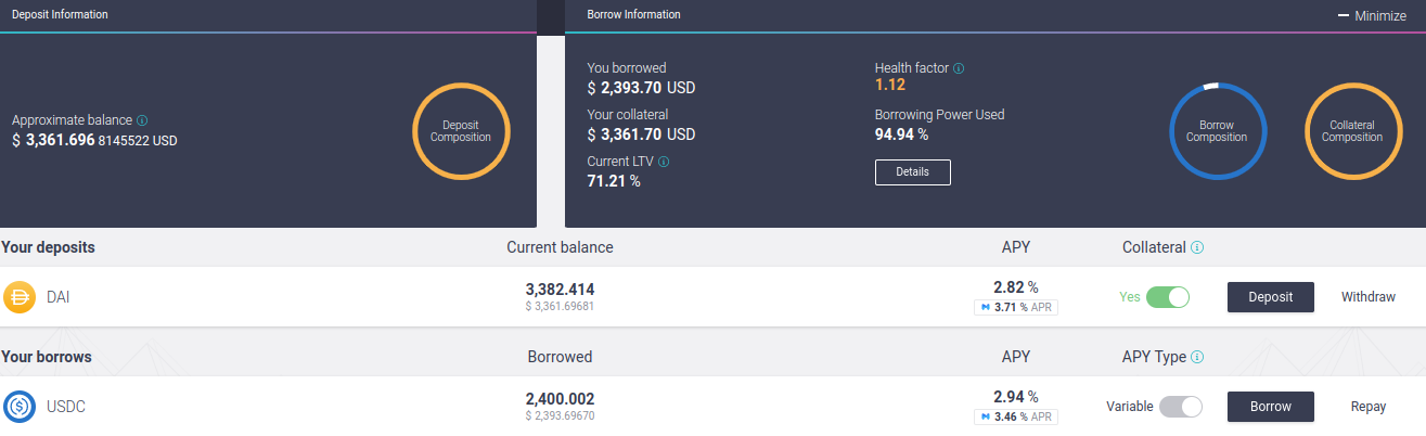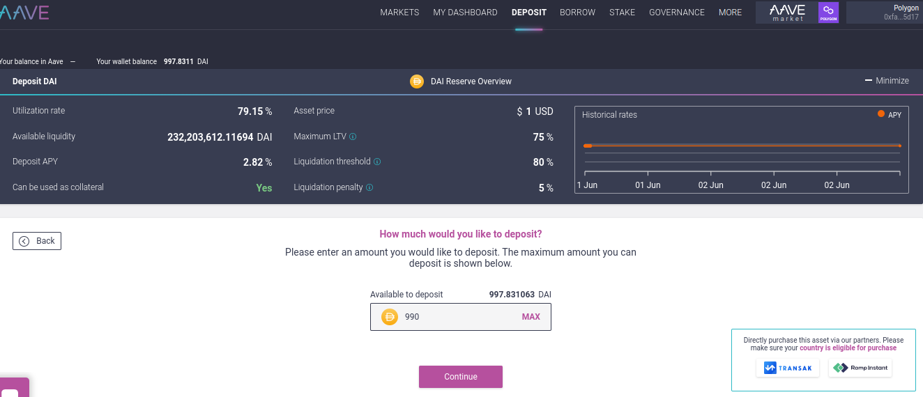 Finally, deposit your DAI in AAVE. This is where the fun begins.
